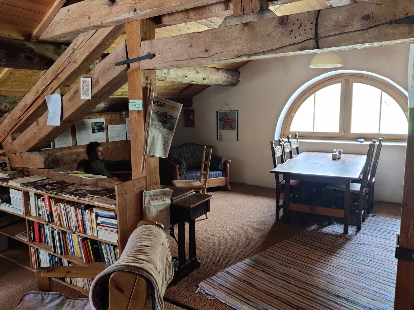 Il Centro Salecina è oggi una casa per seminari e ritiri immersa nella natura alpina, dove si svolgono incontri culturali e politici, workshop, residenze artistiche e momenti di lavoro collettivo.